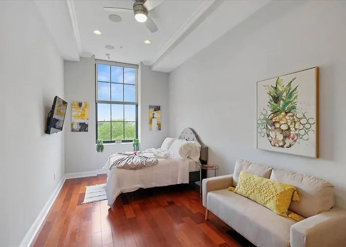 Das Afroamerikanische Museum ist einen 25-minütigen Spaziergang von dem 70 m² großen Upscale Nolibs Xl Studio - Pool & Gym Philadelphia entfernt, während sich die Piazza at Schmidt's in der Nähe befindet. Das Apartment bietet einen privaten Swimmingpool und eine Terrasse für den Komfort der Gäste.